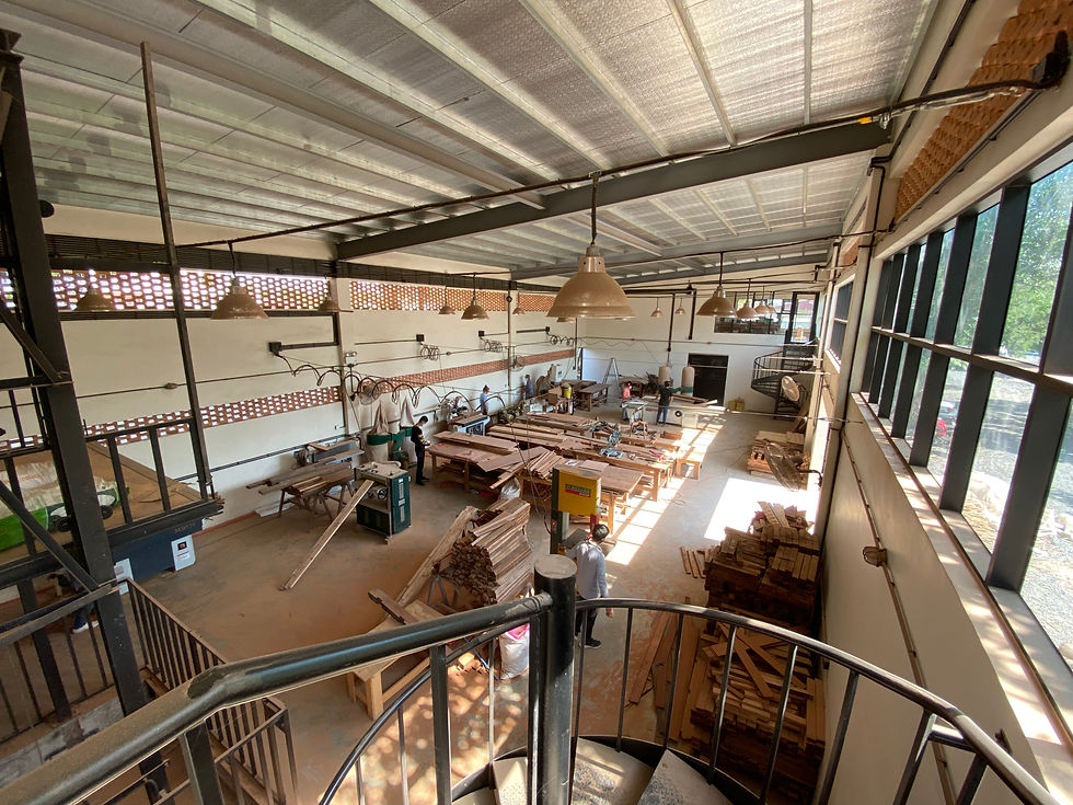 This workshop is intended to be a beginning of a carpentry team that aims to establish wood crafting of local timber and maximise architectural products from reclaimed wood. With open configurations, the workshop has spaces for storage, painting, assembling lines, a huge office, and staff accommodation.